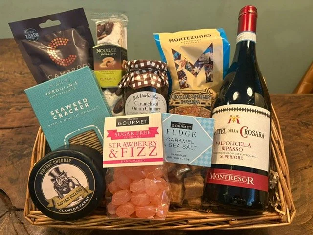 Discover our range of beautifully curated hampers, filled with hand-picked treats, wines, cheeses, and deli favourites. Perfect for gifting or enjoying yourself, each hamper is carefully put together to make any occasion feel extra special.